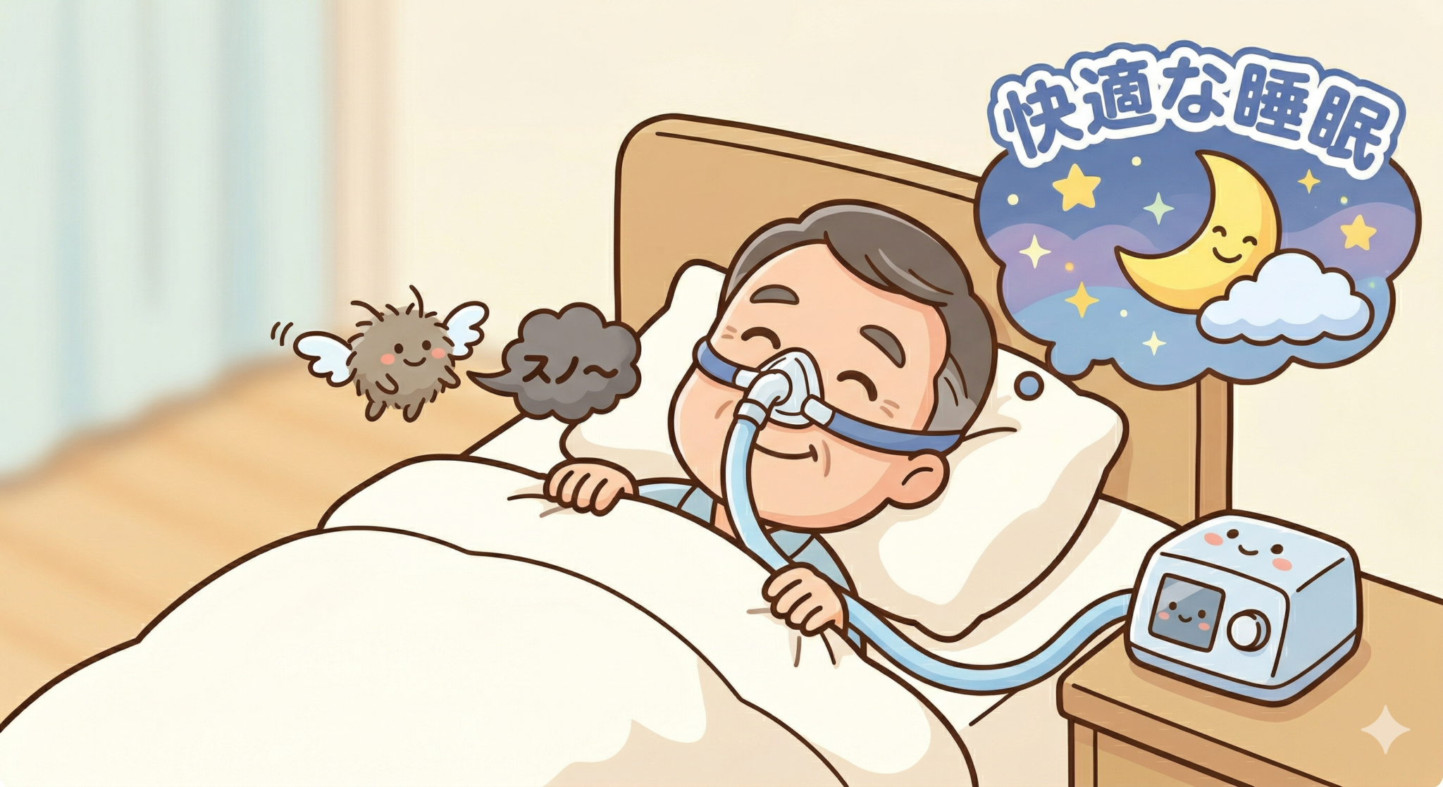 CPAP(シーパップ)療法: 睡眠中に鼻から空気を送り込み、気道を広げる治療法です。